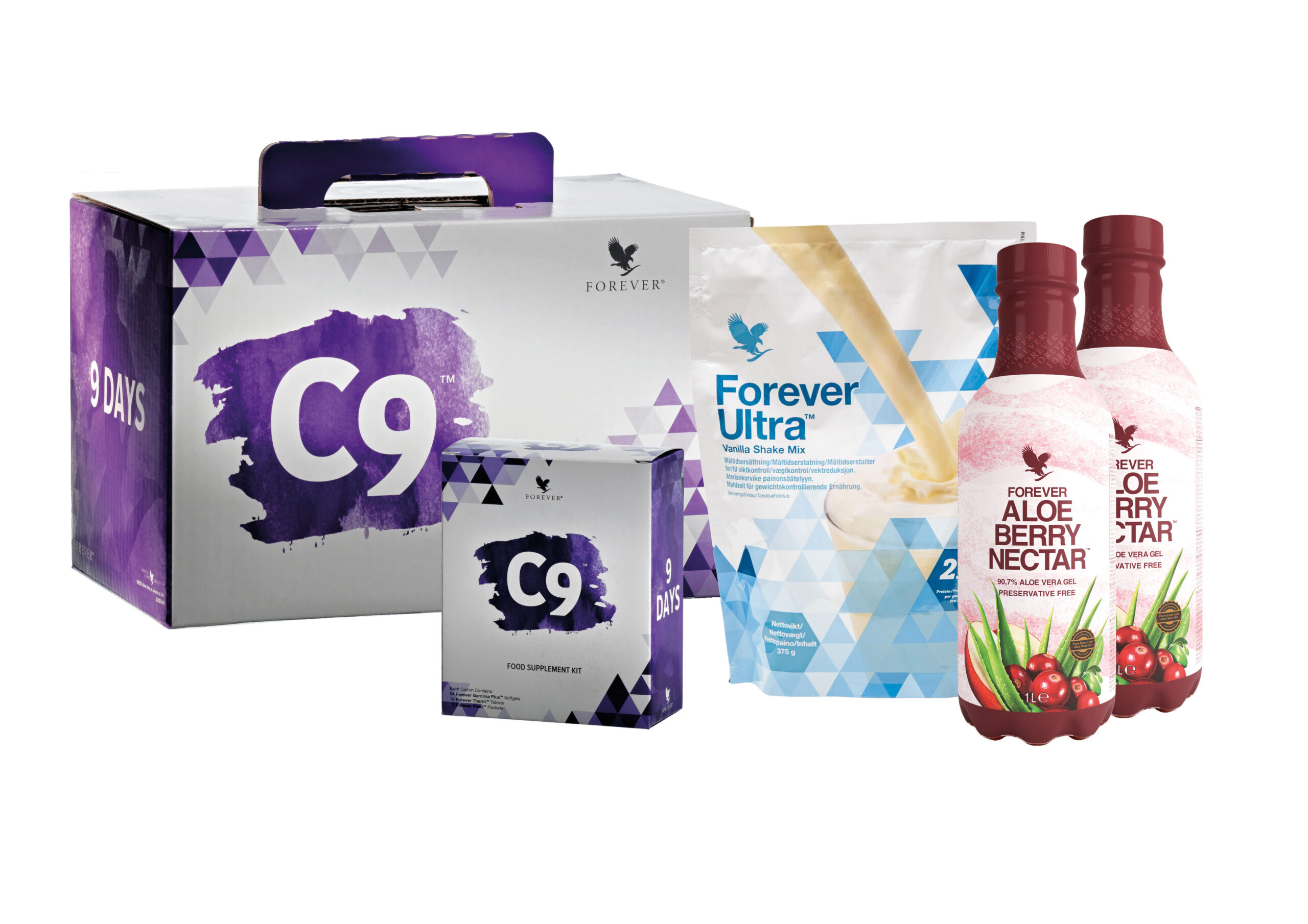 C9 bevat een mooi pakket kwaliteitsproducten die je combineert met onze Forever Aloë Vera Drank. De C9 producten zijn nauwkeurig op elkaar afgestemd en helpen jou je doelen te bereiken. Volg de stappen in je programmaboekje en maak gebruik van de adviezen en praktische tips die je direct kunt toepassen.