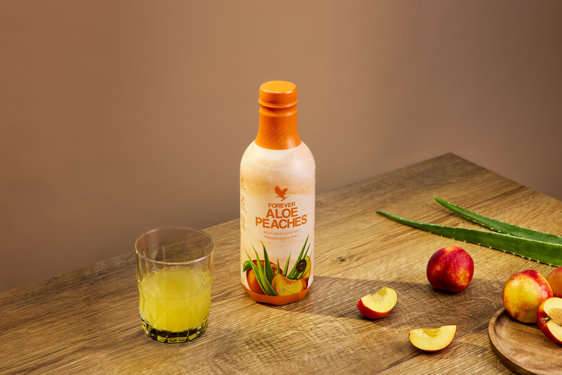Forever Aloe Peaches bevat 84,3% pure aloë vera gel uit het binnenblad van de aloë vera plant en is rijk aan vitamine C. De heerlijke smaak van perzik geeft aloë vera gel een zomerse twist! Forever Aloe Peaches is een ideale aanvulling op een uitgebalanceerd en gezond voedingspatroon.
